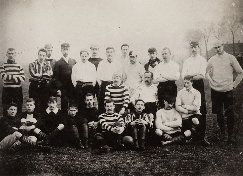 Het Nederlands elftal op 31 maart 1895 (op de dag dat ik dit schrijf exact 125 jaar geleden). Op het programma stond een thuiswedstrijd tegen de Engelse club Maidstone die helaas met 1-2 werd verloren. In het midden met de pet op zit aanvoerder Pim Mulier.