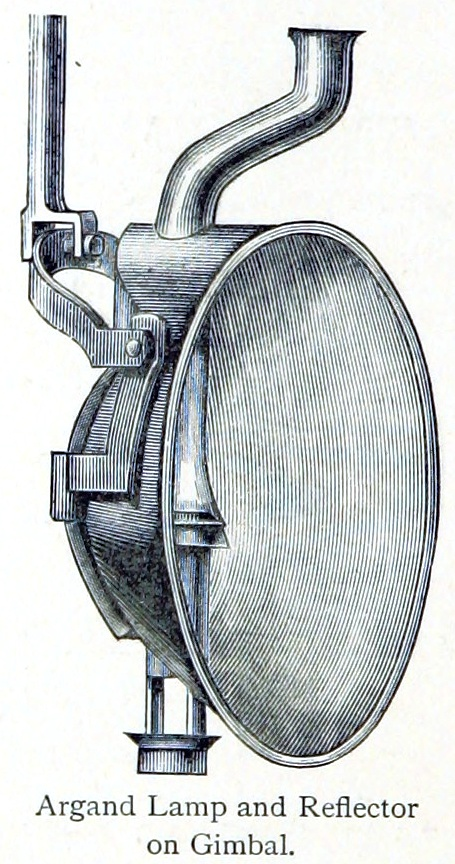 Argand Lamp en reflector aan een cardanische ophanging, 1884.
