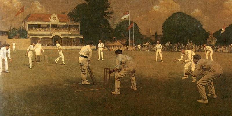 Albert Chevallier Tayler - Kent versus Lancashire. 1906 (Bron: Wikimedia) Cricket is een van oudste georganiseerde sporten ter wereld.
