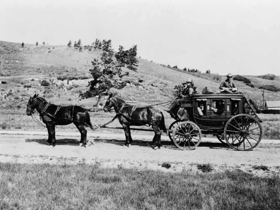 Maker onbekend - Oude postkoets, Yellowstone National Park, Wyoming, 1913 (cropped). Bron: Wikimedia Commons/ Library of Congress