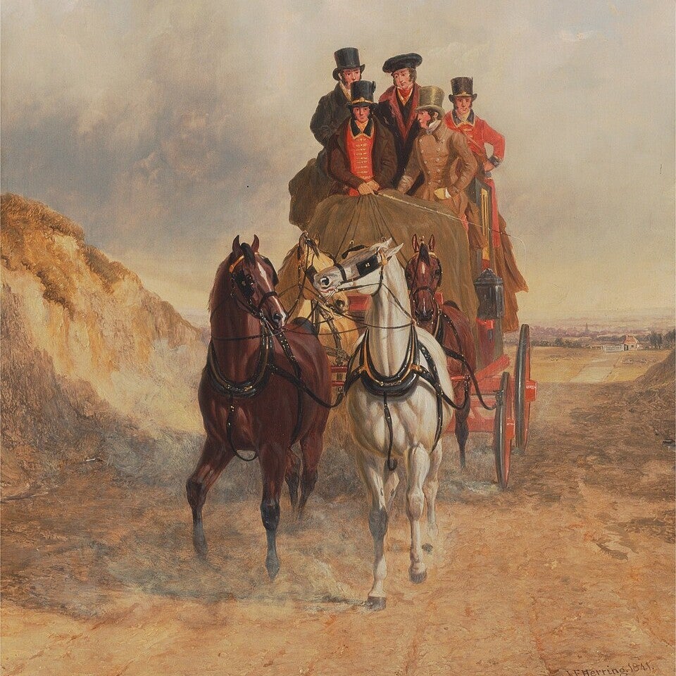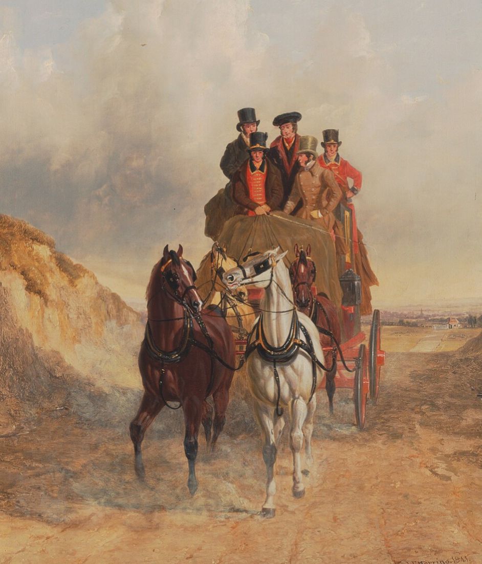 John Frederick Herring Sr. - Postkoets van de Royal Mail onderweg, 1841 (cropped). Bron Wikimedia Commons/ Yale Canter for British Art