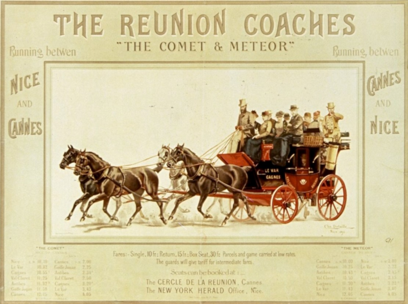 Charles Detaille - Affiche voor The Reunion Coaches "The Comet & Meteor", 1890. Bron: Wikimedia Commons/ Bibliothèque nationale de France