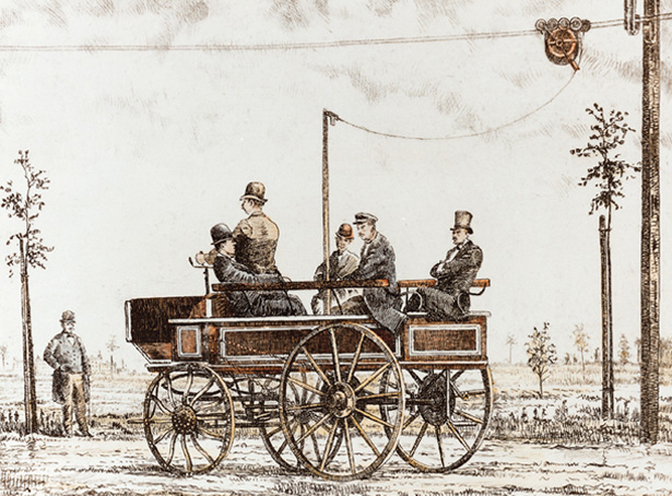 Dat neemt niet weg dat zowel de trolleybus als de elektrische tram voortkomen uit hetzelfde beroemde experiment. Dat vond plaats op 29 april 1882 in een buitenwijk van Berlijn. Op die dag demonstreerde Werner von Siemens (1816-1892) namelijk met groot succes zijn Elektromote, een open kar met een aan een bovenleiding verbonden elektromotor. Meer experimenten en demonstraties van aanverwante voertuigen zouden snel volgen, zowel in Europa als in de Verenigde Staten. Siemens bleef daar vaak bij betrokken en werd zo de grote man van het elektrisch railverkeer.