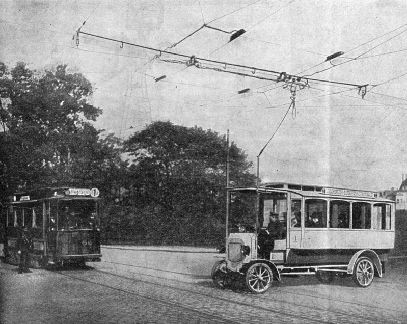 Vaak bleef het dan ook bij experimentele buslijnen, zoals in 1908 in Amsterdam en in België vanaf 1906 in Brussel en Gent. Toch was het hek nu van de dam. De automobielomnibus was zoveel goedkoper en zoveel flexibeler in gebruik dat hij de strijd uiteindelijk toch zou winnen. Daarbij gooide de Eerste Wereldoorlog nog even roet in het eten, maar tijdens het interbellum zou de autobus alsnog uitgroeien tot een volwaardige en veelgebruikte vorm van openbaar vervoer.