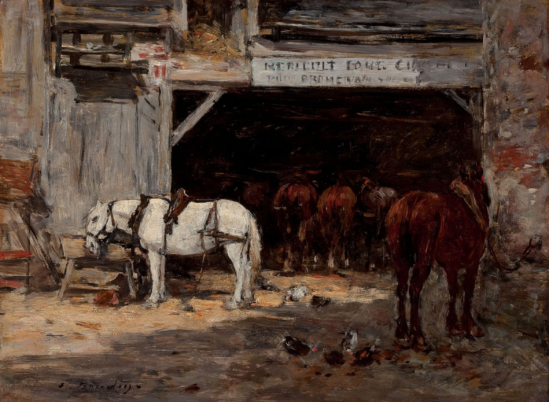 Eugène Louis Boudin - Stal, 19de eeuw. Een overvolle stadse stal.