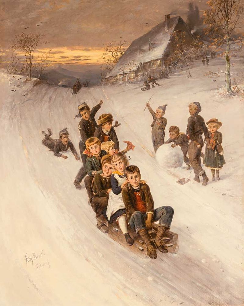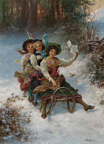 Hans Zatzka - Sleetje rijden, datum onbekend (vermoedelijk 1880-1920).