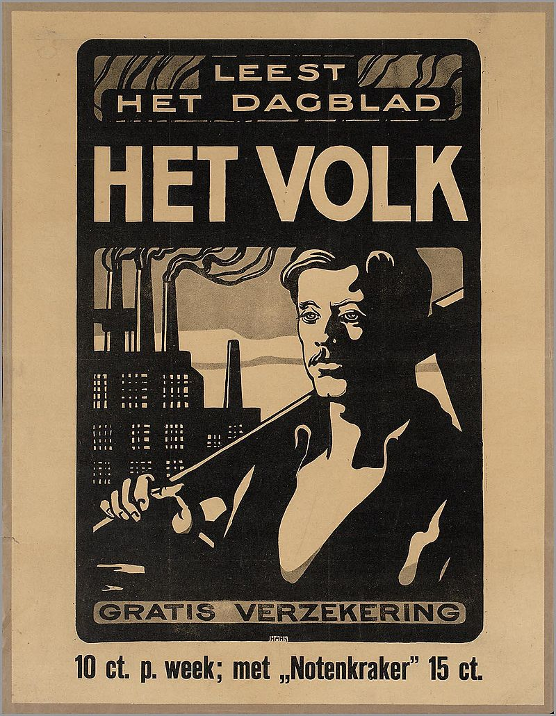 Albert Hahn - Affiche voor dagblad Het Volk, 1910. Dagblad voor leden van de Nederlandse socialistische zuil.