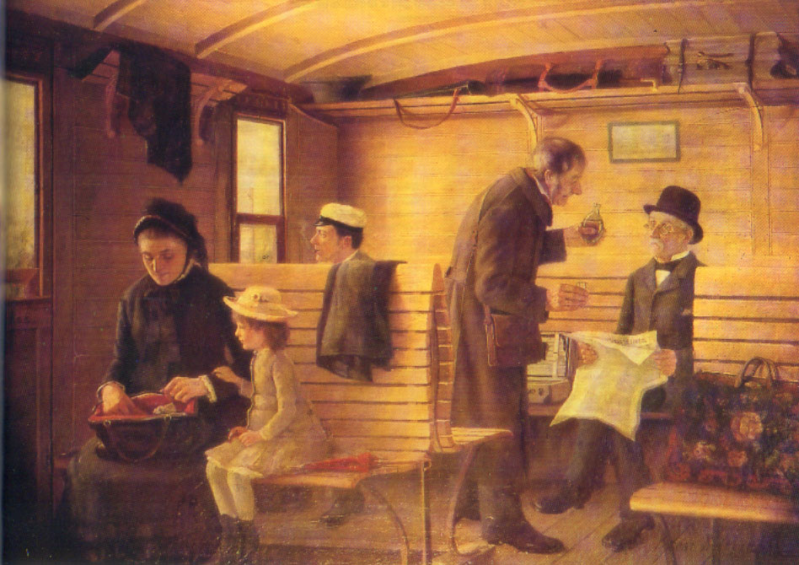 Oscar Stenvall - Derde klasse wagon (in Zweden), vóór 1916. Klassenverschil kwam goed tot uiting in de indeling van een van de meest opvallende producten van de industriële revolutie: de trein.