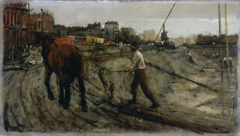 George Hendrik Breitner - Bouwterrein in Amsterdam. +/- 1880. Een heel normaal aangezicht voor een stad in deze dagen. Stedelingen klaagden steen en been, omdat ze altijd wel te maken hadden met grote bouwterreinen en openliggende straten.