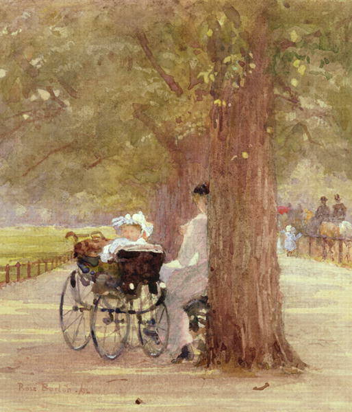 Rose Maynard Barton - Een rustmoment in Rotten Row. 1892 (aquarel). Rotten Row is een brede laan in het Hyde Park in London, een echte parkenstad.