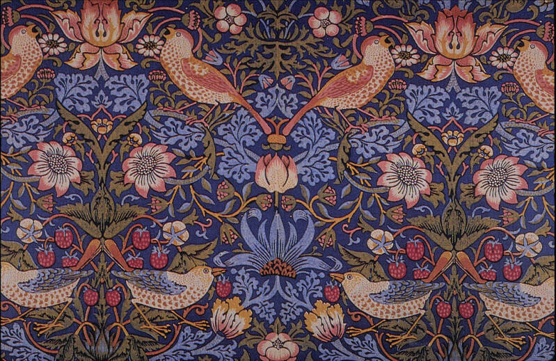 William Morris - Strawberry Thief (Aardbeiendief),1883. Ontwerp voor het bedrukken van textiel.
