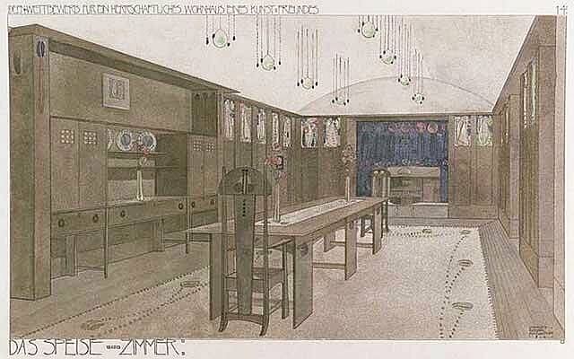 Ontwerp voor een eetkamer van de Schotse meubelmaker Charles Rennie Mackintosh uit 1901. Mackintosh was de beroemdste onder alle Art Nouveau meubelmakers en zeker ook een groot voorbeeld voor de Nederlandse aanhangers van moderne binnenhuisarchitectuur rond de eeuwwisseling.