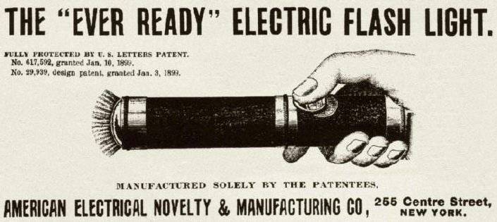 Reclame voor de eerste zaklampen uit 1899.