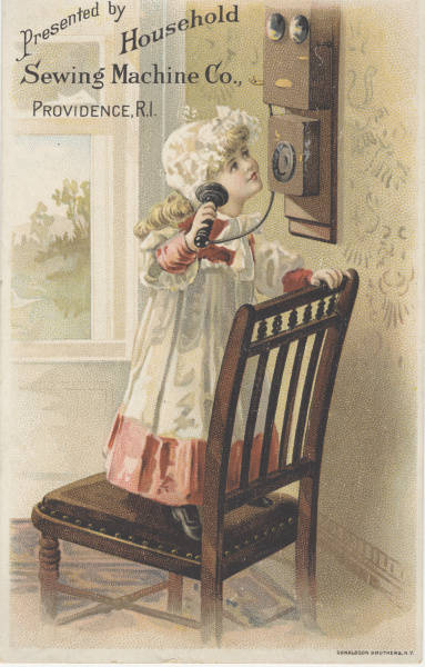 Reclameposter voor een telefoon die zelfs kinderen konden gebruiken. +/- 1900