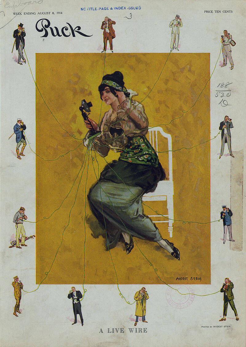 Modest Stein - A live wire. Cover van Puck Magazine, augustus 1914.
