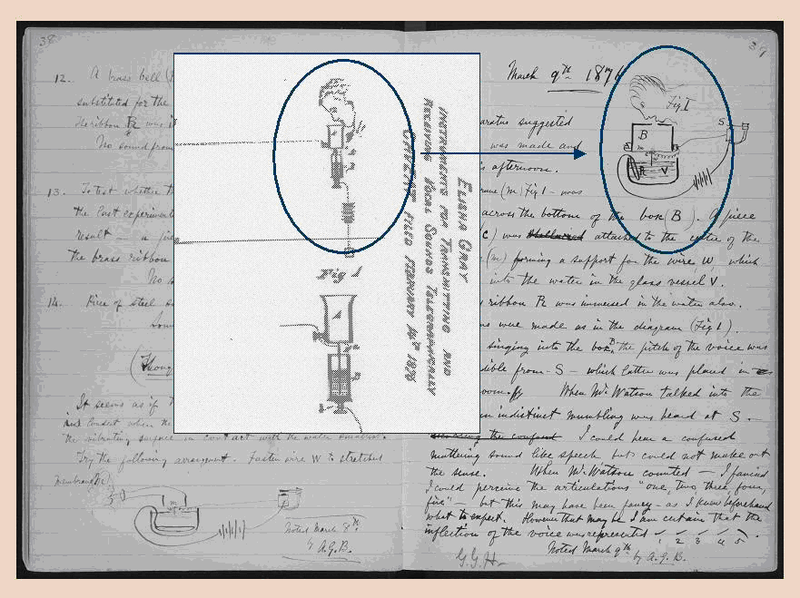 - Bell heeft veel aantekeningen nagelaten, waarin hij uitgebreid uitlegt hoe hij tot het ontwerp van zijn telefoon is gekomen. Het idee dat hij al deze aantekeningen zou hebben vervalst is zeer onwaarschijnlijk. Probleem met deze aantekeningen is wel dat er een week mist en dan om precies te zijn de week voorafgaand aan 10 maart 1876. Het staat vast dat Bell in die week zicht heeft gehad op de specificaties van het caveat van Gray, iets dat absoluut niet had gemogen. Op het eerste gezicht zijn er op bepaalde punten overeenkomsten tussen de aantekeningen van Bell en die van Gray. Bij nadere beschouwing blijkt echter dat de betreffende onderdelen toch significant anders werken. Er is dus wel vals gespeeld, maar niet gestolen.