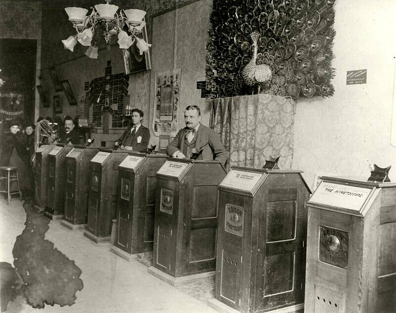 Een zogeheten kinetoscoopsalon in San Francisco rond 1895.