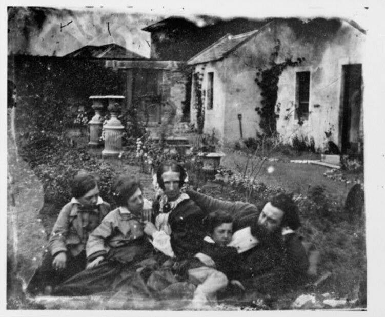 De familie Bell in 1852 in Schotland. Tweede jongen van links is Alexander Graham.