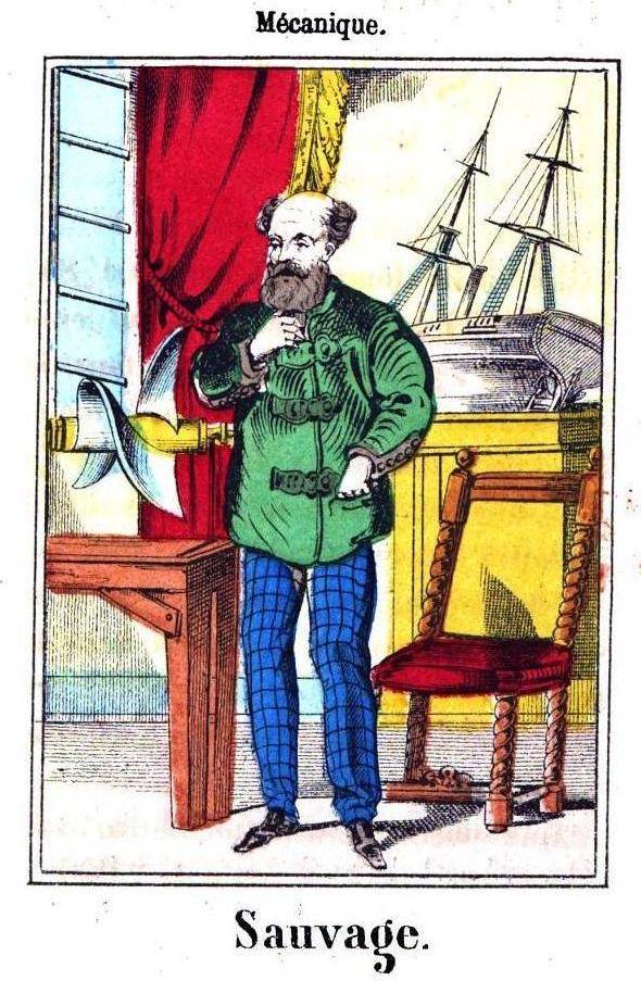 Illustratie van Frédéric Sauvage met schroef in het Album des hommes utiles (Album van behulpzame mannen) van Pellerin en Cie., rond 1860.